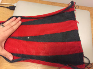 I’m not sure where to go from here. Maybe since I think I’ve got the row count adjustments for a tubular cast on and hem figured out, I should attempt it that way.