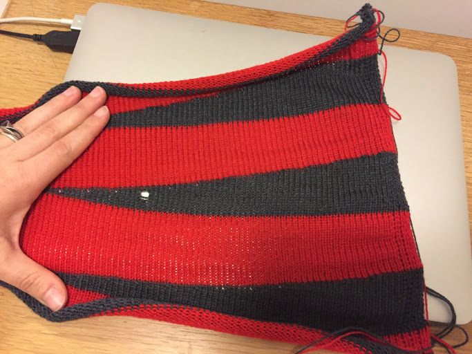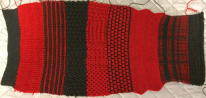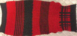 As mentioned previously, I wanted to make the “easy camisole.” This has turned out to be not so easy. None of my gauge swatches were similar to the gauge the pattern requires. The hem is of a type not normally done on the Passap (or maybe just generally not with dual bed machines).