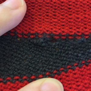 No, of course not. It couldn’t be that easy. The single bed cast on with the acrylic waste yarn goes okay (using the lazy/ugly method – every other needle in working position, knit one row, all needles in work, knit one row), but beyond that… not a chance. Stitches are refusing to knit and not just one here or there, but anything from one to twenty in a row. I really can’t figure out what’s going on. Even if I fix the missed stitches in the first row after cast on, it happens again the next row. And the next. And the next. If I can get enough length to use weights, that seems to help, but only for the stitches that are directly weighted. Anything in between the weights, those don’t like to knit (and with 124 stitches cast on, there’s quite a few in between). I have wiped down and oiled the machine, but to no avail.