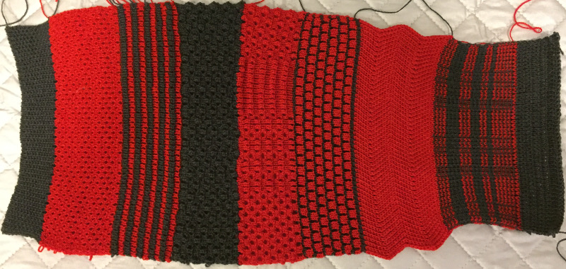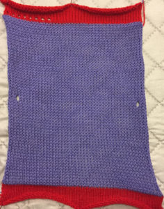 At this point, I was rather frustrated. I reviewed the measurements from my swatches and decided I’d pick the one with the closest match on rows. The width measurements given on the pattern’s diagram look to be correct. I also figured that I might as well attempt the folded up hem used in the pattern. I figured I’d be good from here on out.