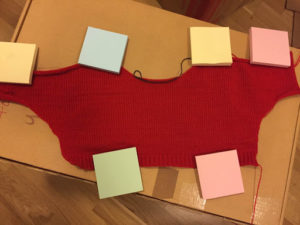 The instructions, though, for the right shoulder and right shoulder-shaping – ridiculous. I think there might be an extra two rows for the right side (I’m not quite motivated enough to do a proper manual count and my notes aren’t good enough to say without counting).